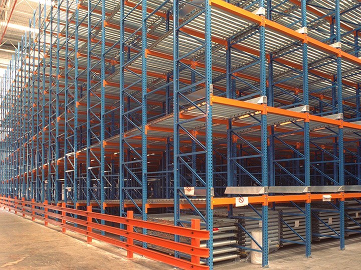 重力式貨架又叫輥道式貨架,屬于倉儲貨架中的托盤類存儲貨架。重力式貨架是橫梁式貨架衍生品之一,貨架結構與橫梁式貨架相似,只是在橫梁上安上滾筒式軌道,軌道呈3-5°傾斜。托盤貨物用叉車搬運至貨架進貨口,利用自重,托盤從進口自動滑行至另一端的取貨口。重力式貨架屬于先進先出的存儲方式。貨架特點編輯1、貨物由高的一端存入,滑至低端,從低端取出。貨物滑動過程中,滑道上設置有阻尼器,控制貨物滑行速度保持在安全范
