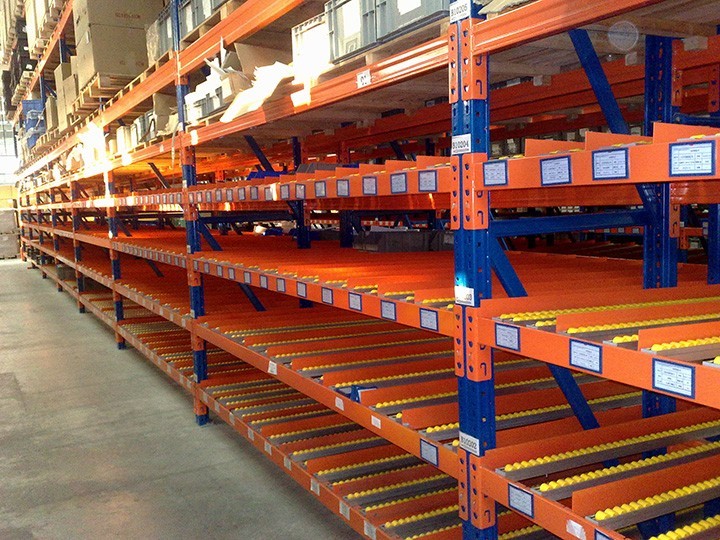 流利式貨架又稱滑移式貨架,采用輥輪鋁合金,鈑金等流利條,利用貨物臺架的自重,從一邊通道存貨,另一邊通道取貨實現(xiàn)先進先出,存儲方便,以及一次補貨多次取貨。流利架存儲效率高,適合大量貨物的短期存放和揀選??膳?/span>電子標簽,實現(xiàn)貨物的輕松管理,常用滑動容器有周轉(zhuǎn)箱,零件盒及紙箱,適合大量貨物和短期存放和揀選。適合大量貨物的短期存放和揀選。廣泛應用于配送中心、裝配車間以及出貨頻率較高的倉庫。
